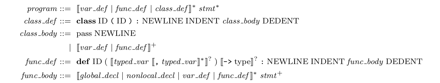 3. A context-free syntax definition ChocoPy complying with the grammar in Figure 3 of the reference manual