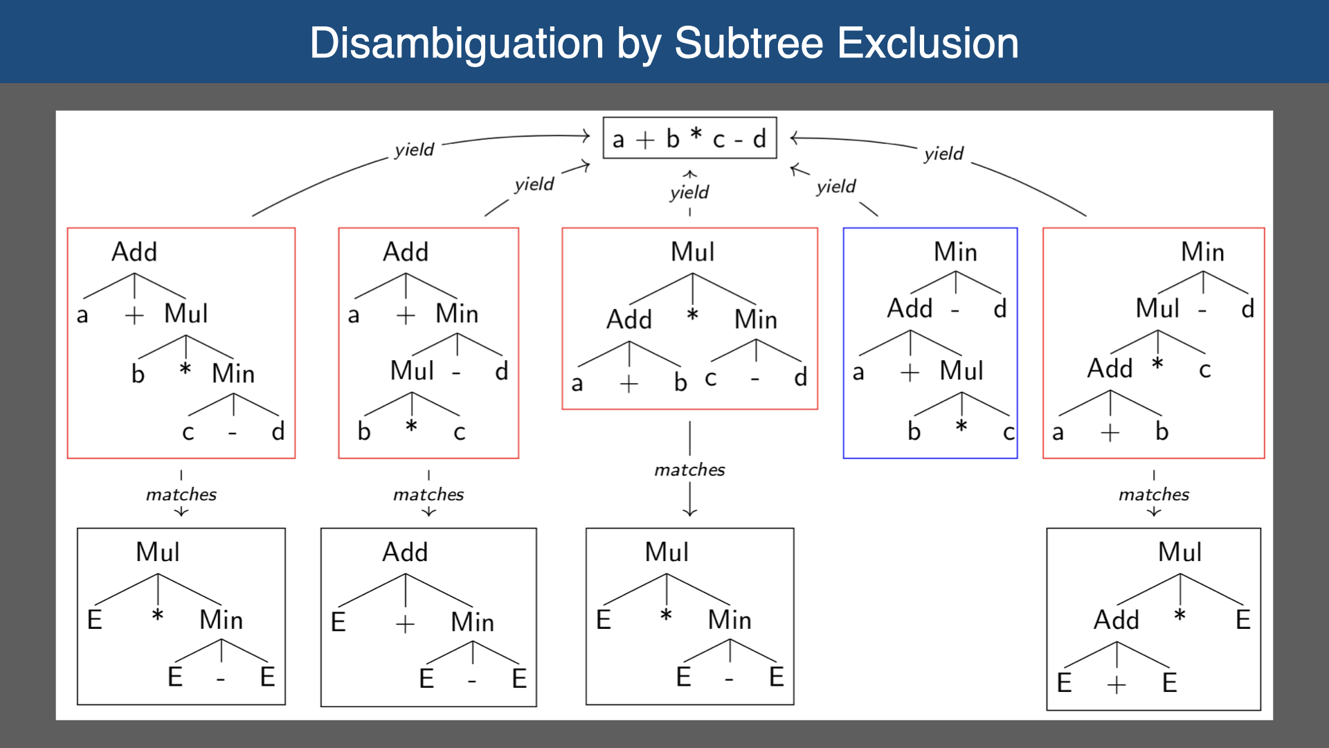 In this lecture we study the declarative disambiguation of declarative syntax definitions using associativity and priority rules. As a prelimary to understanding disambiguation, we first study the semantics of context-free grammars in terms of sentence and tree derivation. We discuss the semantics of such rules in terms of subtree exclusion and how (simple) disambiguations can be expressed by means of grammar transformation.